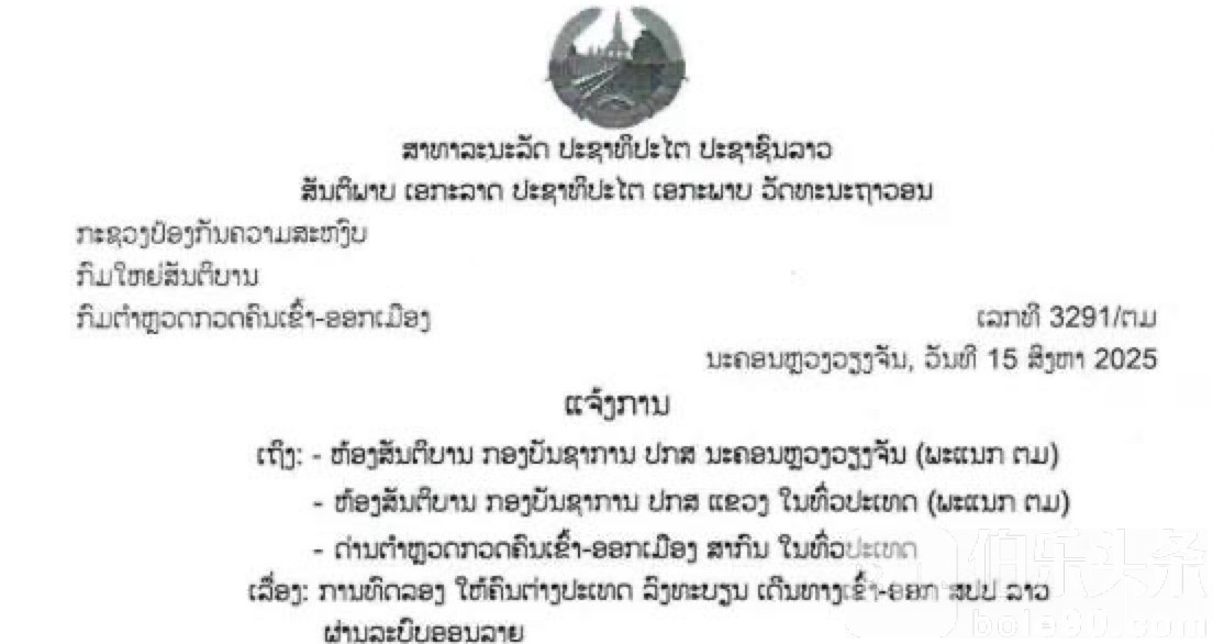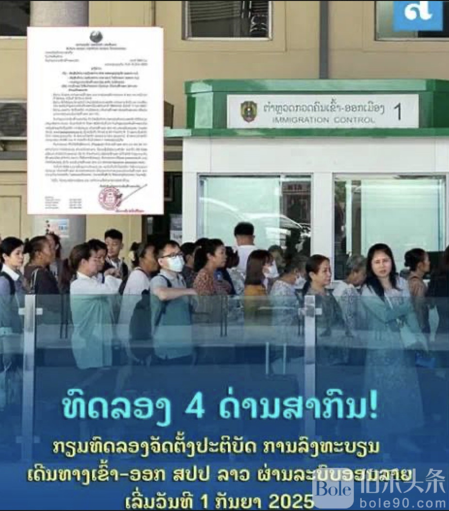伯乐头条专讯:为提升出入境管理效率,老挝公安部出入境管理局宣布,将于2025年9月1日起在4个国际口岸试行出入境在线登记系统。