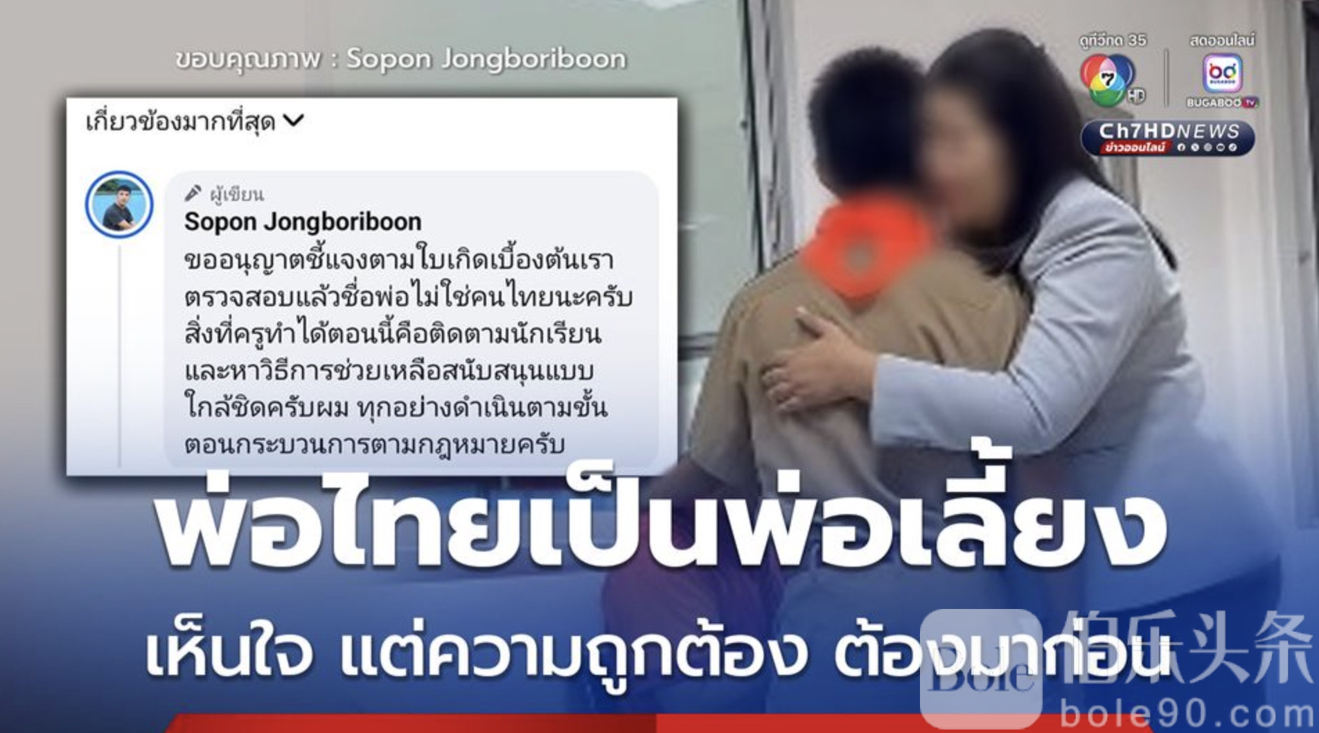 伯乐头条专讯:近日,泰国一名13岁学生因被举报为“外籍人士”而遭警方控制,引发社交网络广泛关注。学生在泰国长期生活、学习,母亲为柬埔寨人,父亲为泰籍继父,但非亲生父亲。事件曝光后,教师与相关部门表示,已根据出生证明核实信息,并正依法采取措施协助学生。