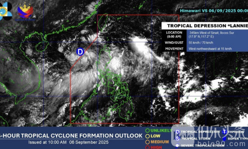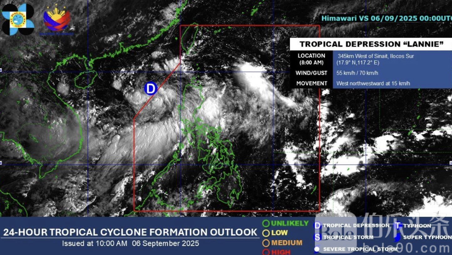伯乐头条专讯:菲律宾气象局(PAGASA)9月6日清晨发布最新预报称,热带低压“兰妮”(Lannie)已于上午8时正式离开菲律宾责任区(PAR),目前正远离国土,但危险并未完全解除。