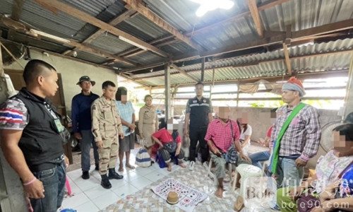 伯乐头条专讯:9月5日下午,泰国罗勇府罗勇县警方联合多部门突击检查一处赌博窝点,当场抓获10名正在聚众玩骰宝(Hi-Lo)的男女赌徒,场面一度混乱,不少上了年纪的“叔叔阿姨”慌忙逃窜,却因跑不动最终被抓。