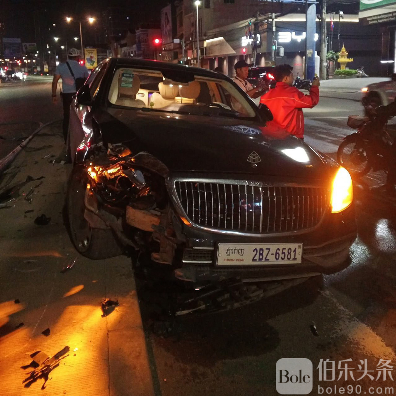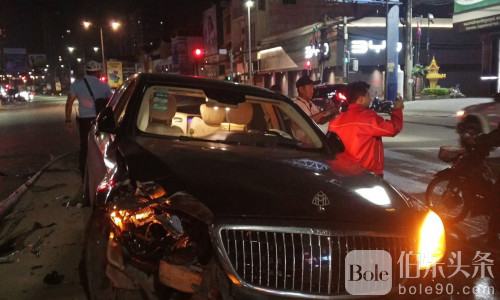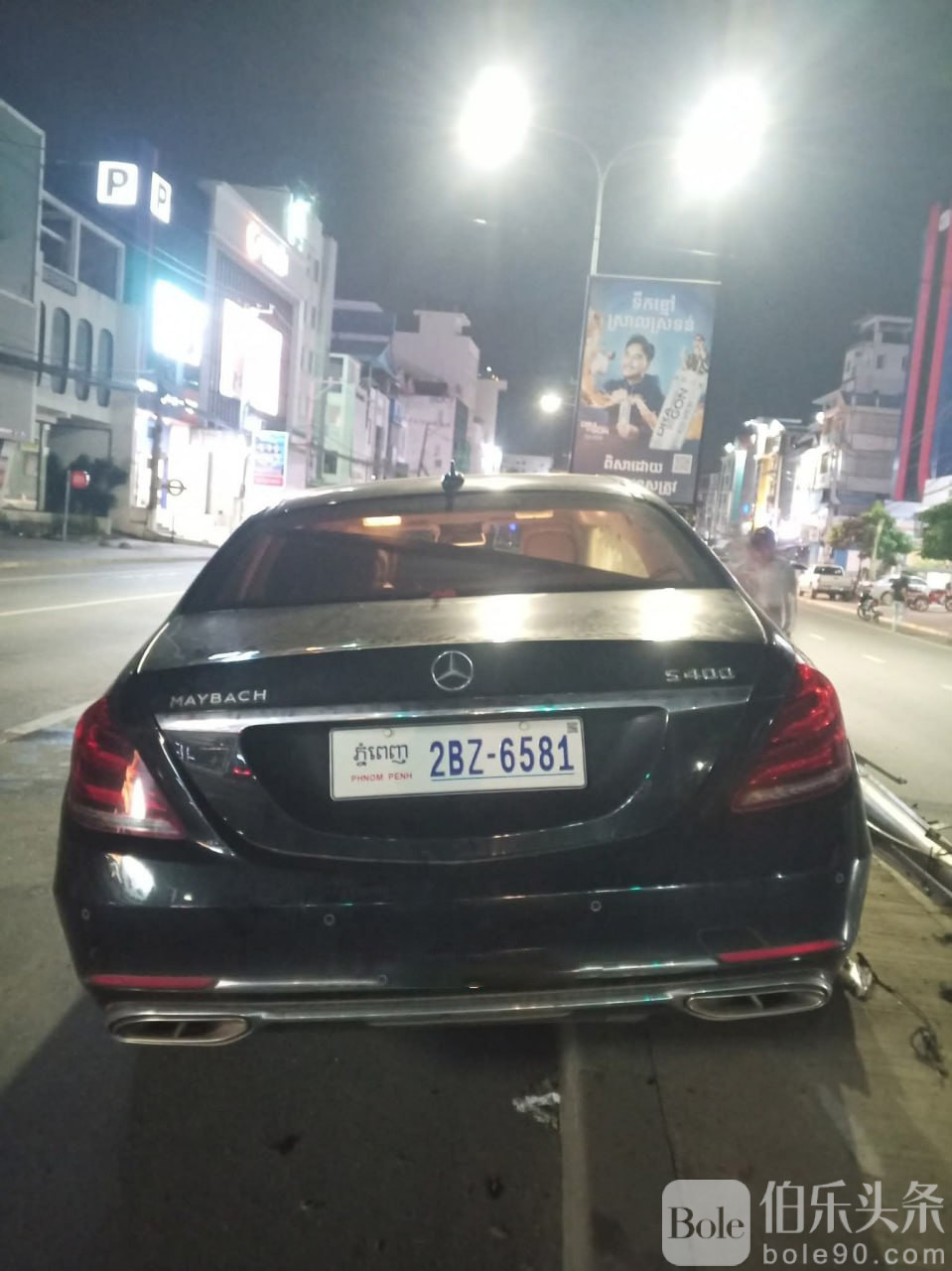 金边迈巴赫撞毁路灯,中国司机被带走调查