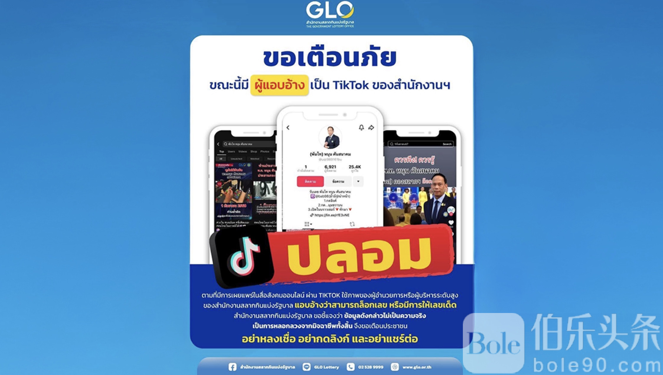 伯乐头条专讯:泰国彩票管理局(GLO)近日紧急提醒民众,网络上流传的所谓“高管提供锁号或彩票内部号码”的信息全部为虚假,切勿轻信。近年来,随着社交媒体与数字技术快速发展,诈骗手法也日益多样化,许多不法分子利用TikTok、Line、Facebook等平台冒充GLO高管发布虚假信息,诱导民众投资或购买所谓“保证中奖”的彩票号码,造成严重财产损失。