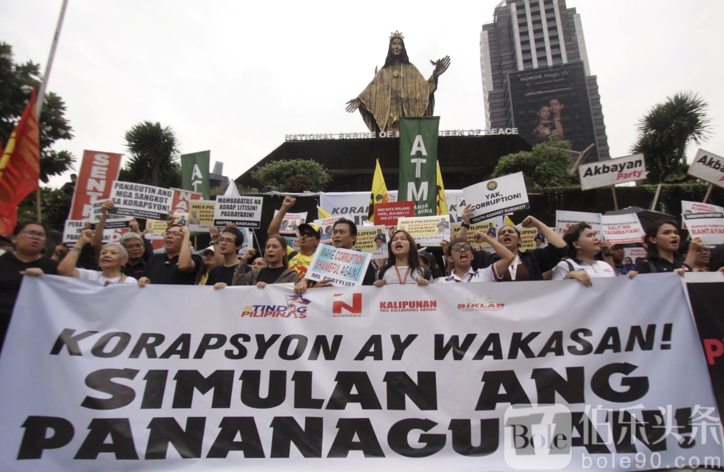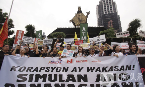 伯乐头条专讯:9月11日清晨,菲律宾首都马尼拉爆发新一轮街头抗议,数百名来自多个民间与民主团体的成员聚集在奎松市EDSA圣母和平神社(EDSA Shrine),怒斥政府治洪工程存在严重舞弊与腐败问题。