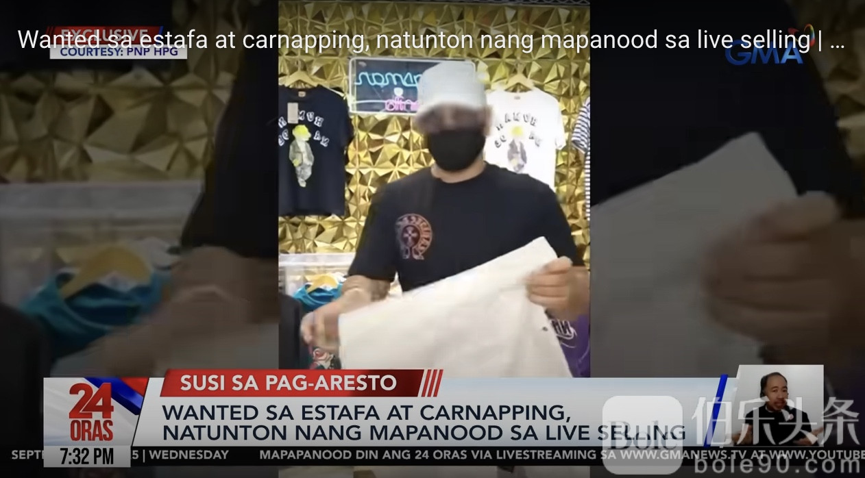 伯乐头条专讯:菲律宾一名因诈骗(estafa)与偷车(carnapping)遭通缉的男子,竟然在网络直播卖货时露面,结果被细心线人一眼认出,最终被警方顺藤摸瓜,在邦板牙省卢包镇当场逮捕。