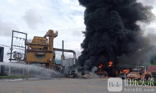 伯乐头条专讯:泰国兰普府兰普县14日清晨发生严重爆炸事故,一家沥青厂突发爆炸并引燃大火,造成1名工人当场身亡,另有2人受伤。现场火光冲天,浓烟直冲天际,救援人员紧急出动全力灭火。