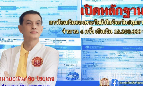 伯乐头条专讯:9月14日,泰国著名律师阿南猜·猜亚德(Ananchai Chaiyadech)在社交媒体公开重磅证据,直指巴吞他尼府一所知名寺庙的高僧涉嫌向女信众(俗称“色伽”)多次转账,总金额高达1220万泰铢!消息一出,震惊佛门与社会,引发信徒群体的轩然大波。