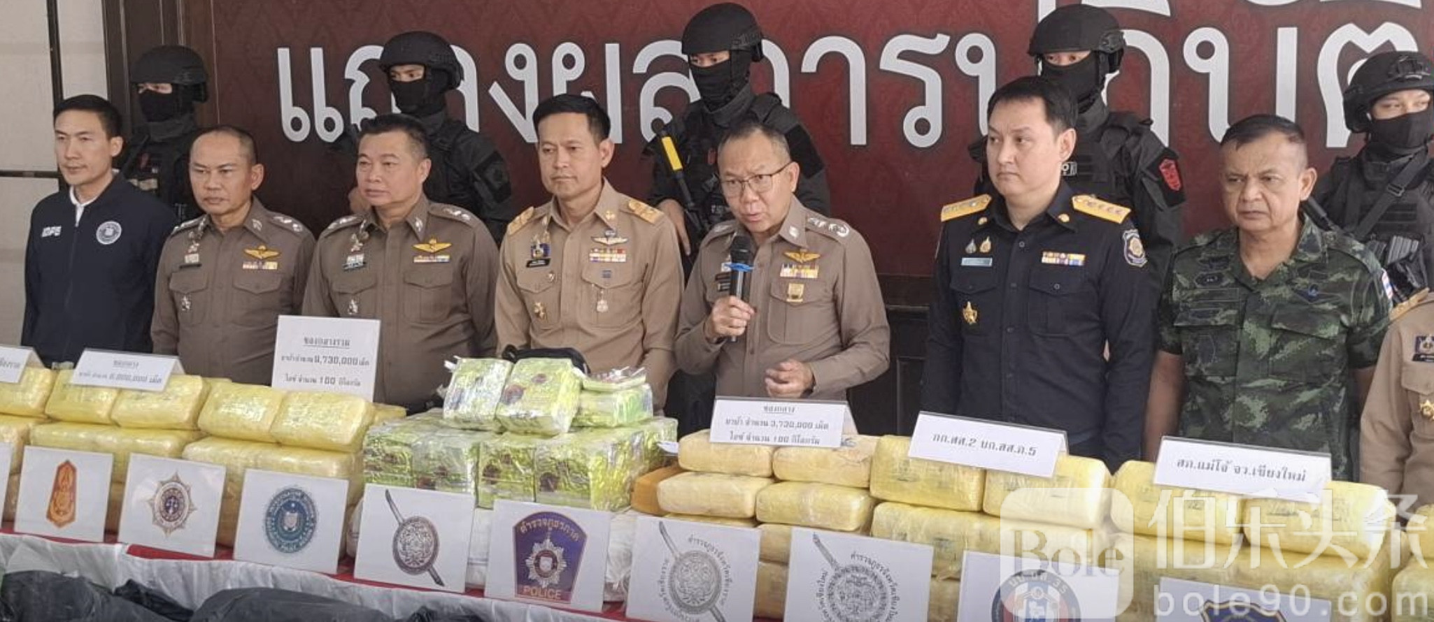 伯乐头条专讯:9月15日,泰国警方在清迈召开记者会,宣布连破两起特大毒品案件,缴获毒丸9,730,000颗以及100公斤冰毒,成为警方今年以来最大规模的毒品缴获行动。