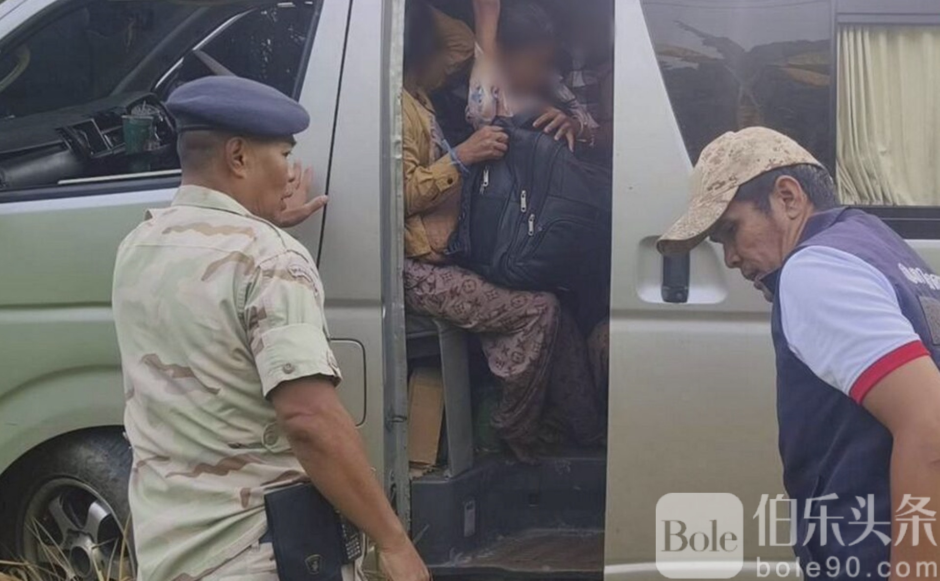 伯乐头条专讯:泰国甘达那武里府日前发生惊险追捕事件,三辆可疑小巴因逃避检查先后失控侧翻,被查获车内共有外籍偷渡者113人,其中男性73人、女性38人及儿童2人。
