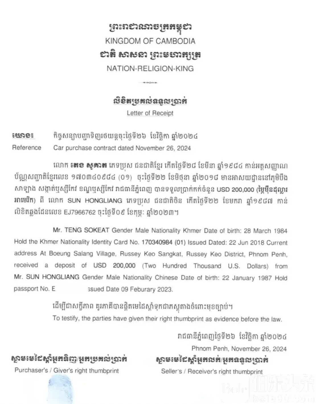 伯乐头条专讯:一桩购车交易在柬埔寨闹出大丑闻!9月16日,柬埔寨知名记者彭万那在脸书上爆料称,一名警长私吞了中国买家20万美元购车款,引发舆论震动。