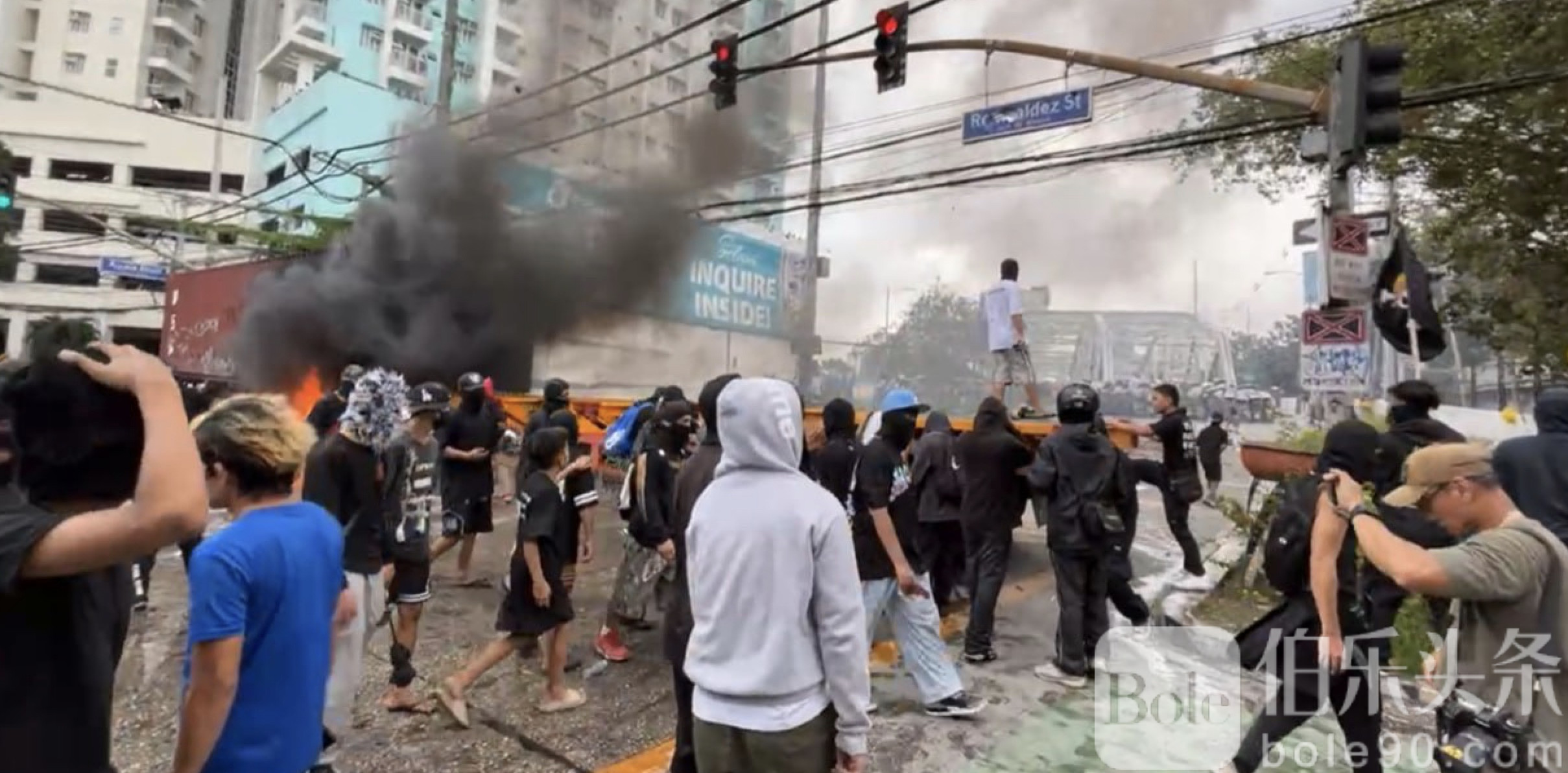 伯乐头条专讯:马尼拉阿亚拉大桥的夜空被冲天火光撕裂 ——9 月 21 日下午 4 时,当防暴警察的盾牌阵刚在桥头筑起防线,数百名抗议者已点燃一辆空载货车,轮胎爆裂的巨响中,石块如冰雹般砸向执法人员。