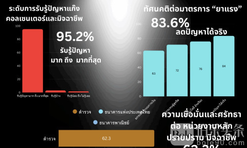 调查还显示,民众对主要执法与监管机构信心较高:62.3%信任泰国警方,58.9%信任泰国中央银行,51.3%信任商业银行。公众认为,警察和央行在反诈骗中起核心作用,但对商业银行的信心仍需加强。