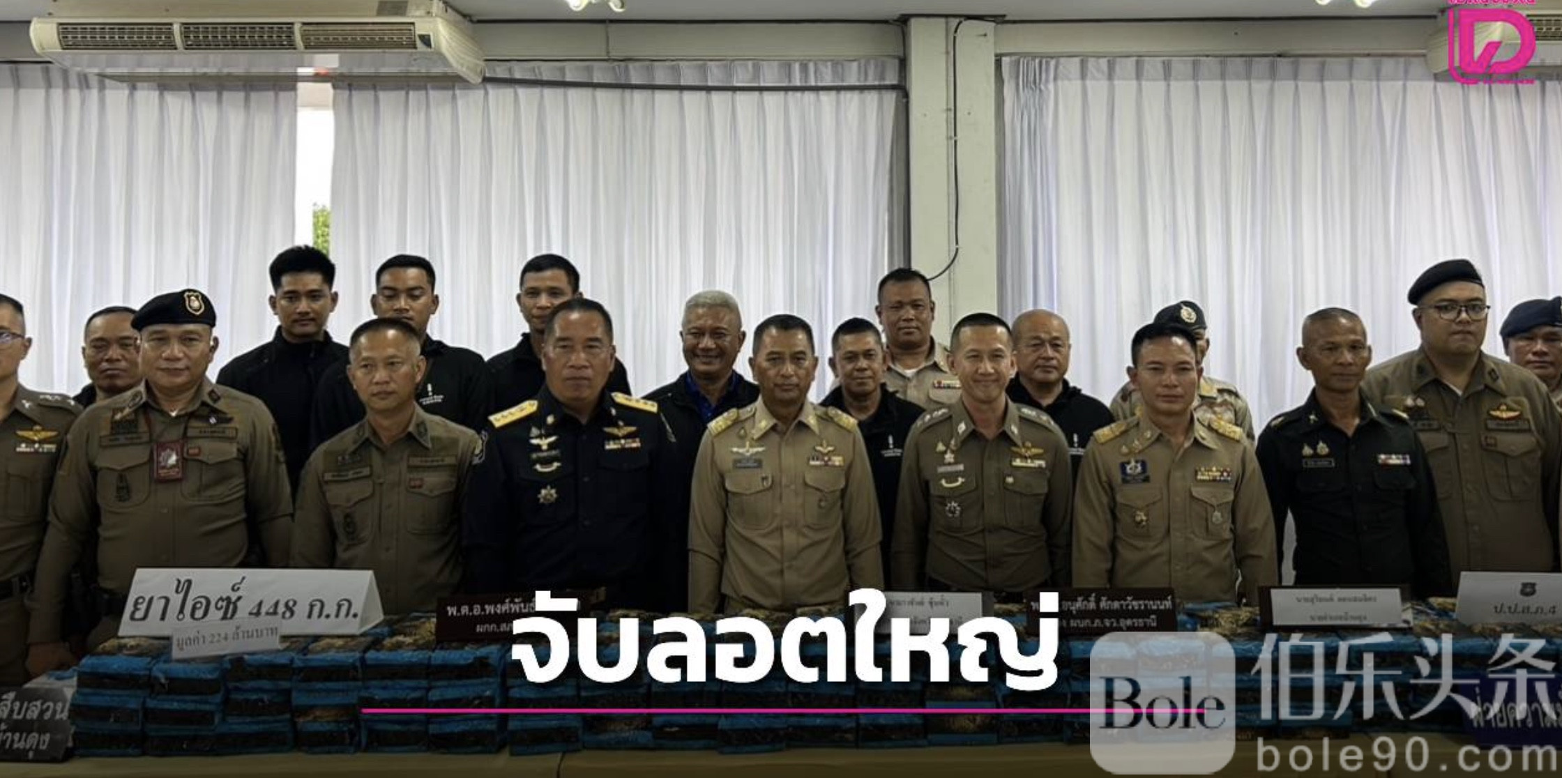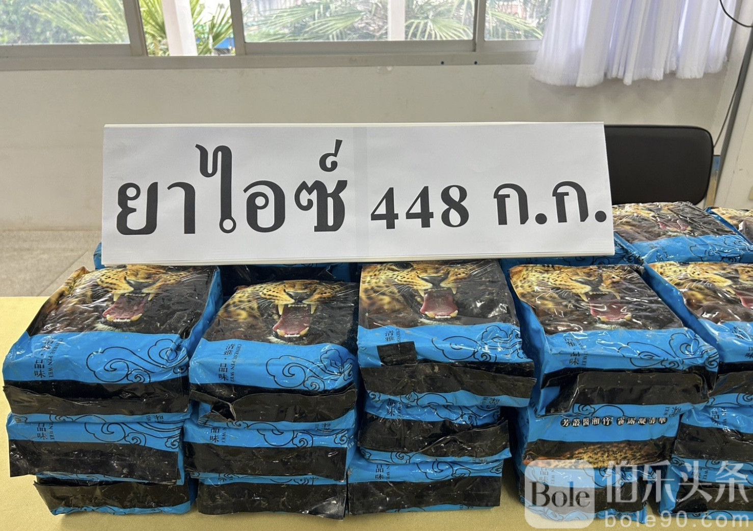 伯乐头条专讯:9月22日,泰国乌隆他尼府警方高调宣布,联合“5虎Plus”特别行动组成功截获一起跨国毒品运输案件,当场查获冰毒(甲基苯丙胺)多达448公斤,并逮捕两名嫌犯。