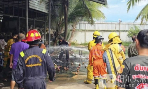 伯乐头条专讯:9月29日下午,泰国南邦府一座知名烟花工厂突发火灾,大量用于制作烟花的原材料起火燃烧,险些引发大规模爆炸。所幸消防队和救援人员及时赶到,将火势控制在蔓延前扑灭,避免了一场灾难。