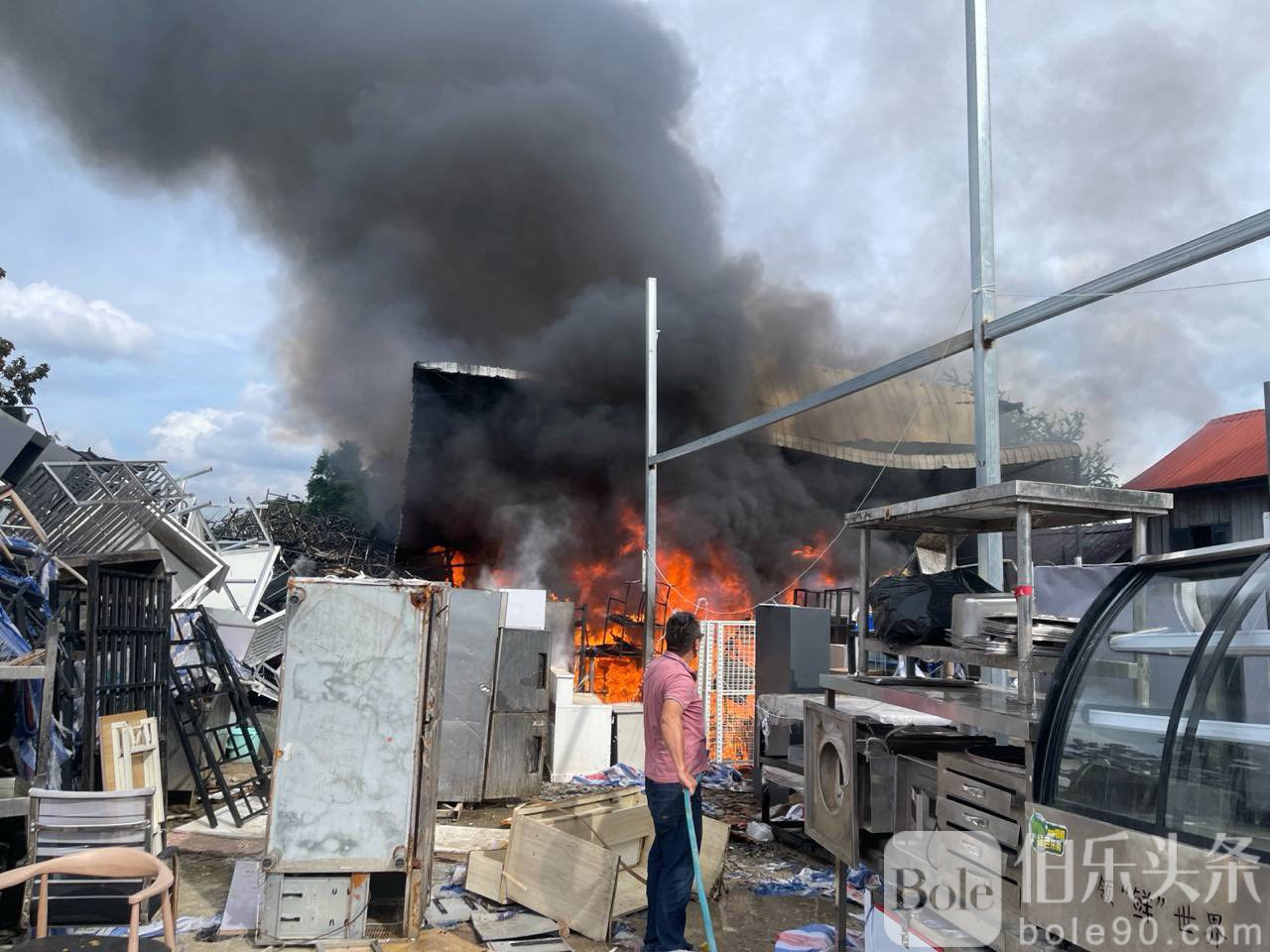 仓库老板为28岁的中国籍张某,仓库内存放大量椅子及塑料制品。初步调查显示,火灾可能因焊工操作电焊时不慎引发。