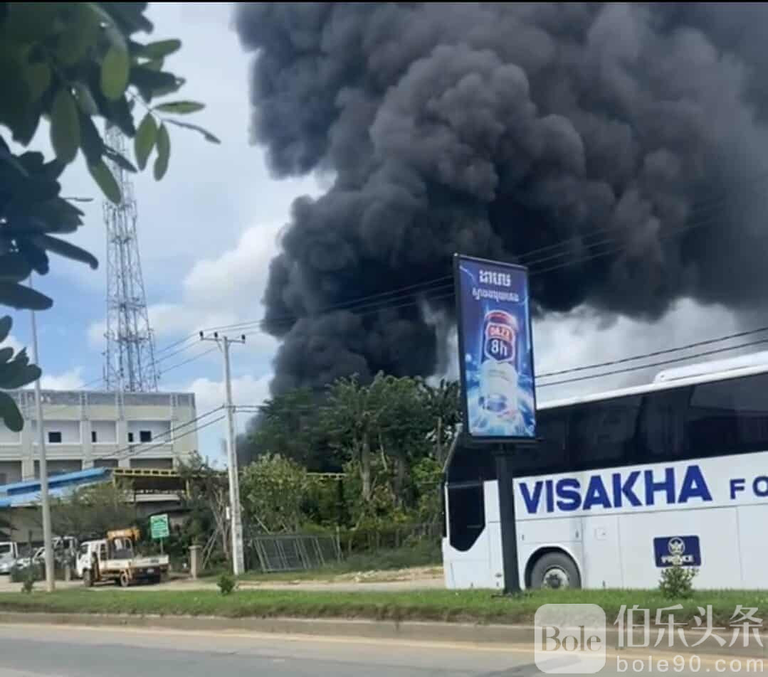 2025年10月5日下午,柬埔寨金边河内路一家中资仓库突发火灾,现场浓烟滚滚,引发周边居民关注。
