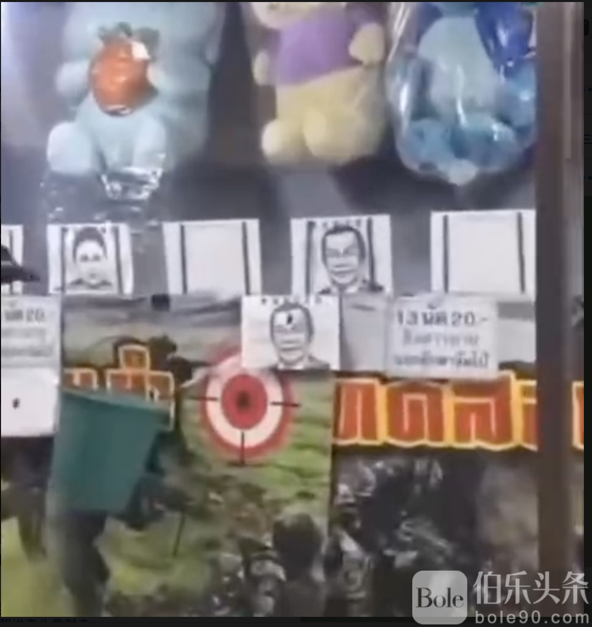 伯乐头条专讯:近日,社交媒体广泛流传一段视频显示,在泰国街头的射击摊上,柬埔寨领导人洪森的画像被钉在靶子上,有顾客朝其头像射击。