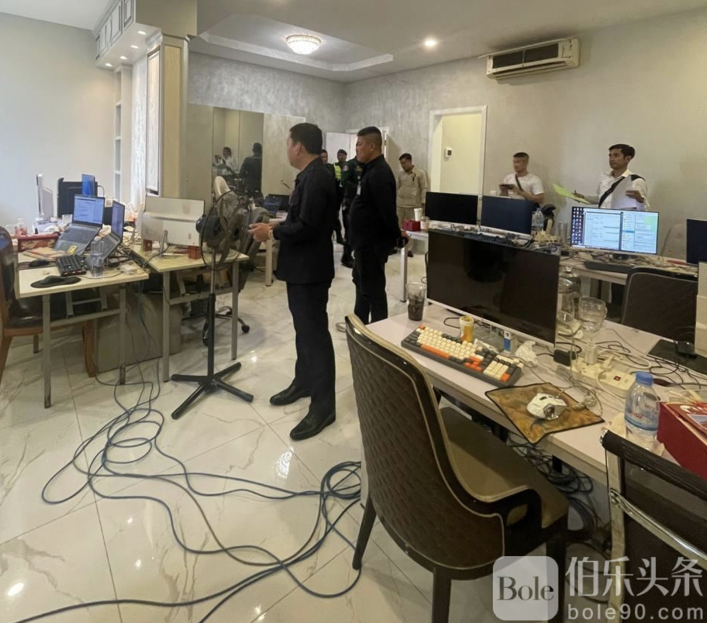 伯乐头条专讯:10月3日,警方突袭森速区一处豪华别墅,成功捣毁一个跨国诈骗窝点,当场抓获18名中国籍涉诈人员,现场一度戒备森严、气氛紧张。