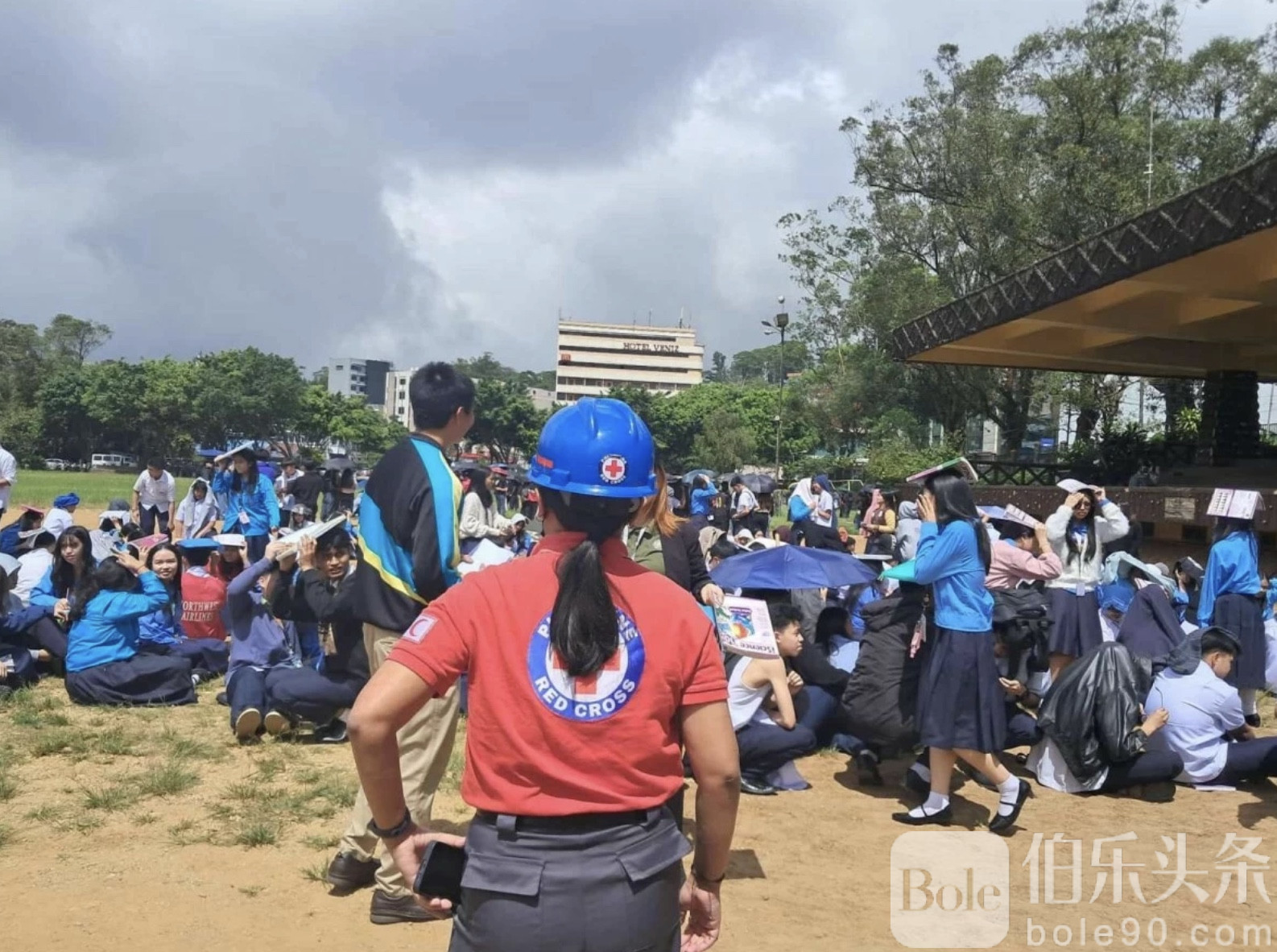 伯乐头条专讯:菲律宾北吕宋地区今晨(10月9日)突发4.4级地震,震源位于拉乌尼翁省Pugo镇,碧瑶市震感强烈达震度五级(Intensity V)。强烈晃动引发校园与社区恐慌,造成至少40名学生晕倒或休克送医,另有约500名民众紧急撤离至避难中心。
