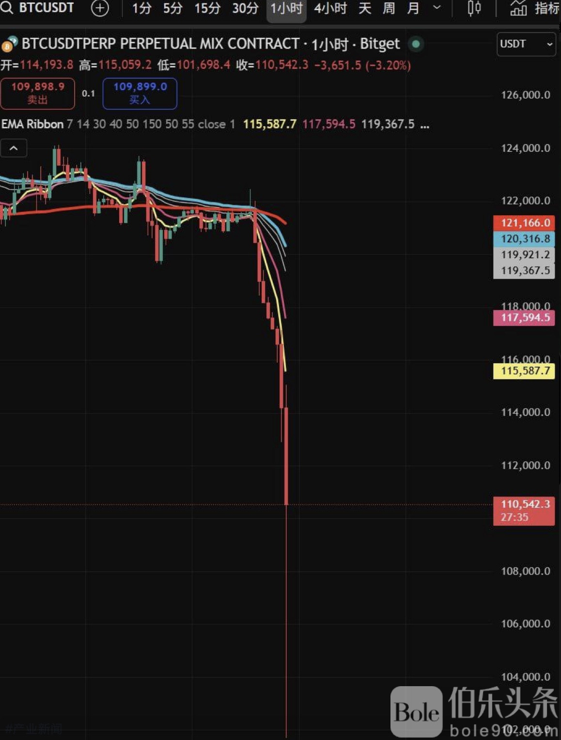 伯乐头条专讯:毫无预兆的暴雷,让整个币圈再次陷入恐慌。比特币在过去24小时内突然暴跌7.41%,短线价格如同被“插针”刺穿,带动一众山寨币同步跳水,市场瞬间崩盘。