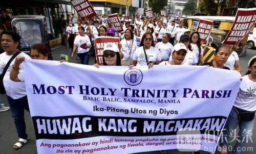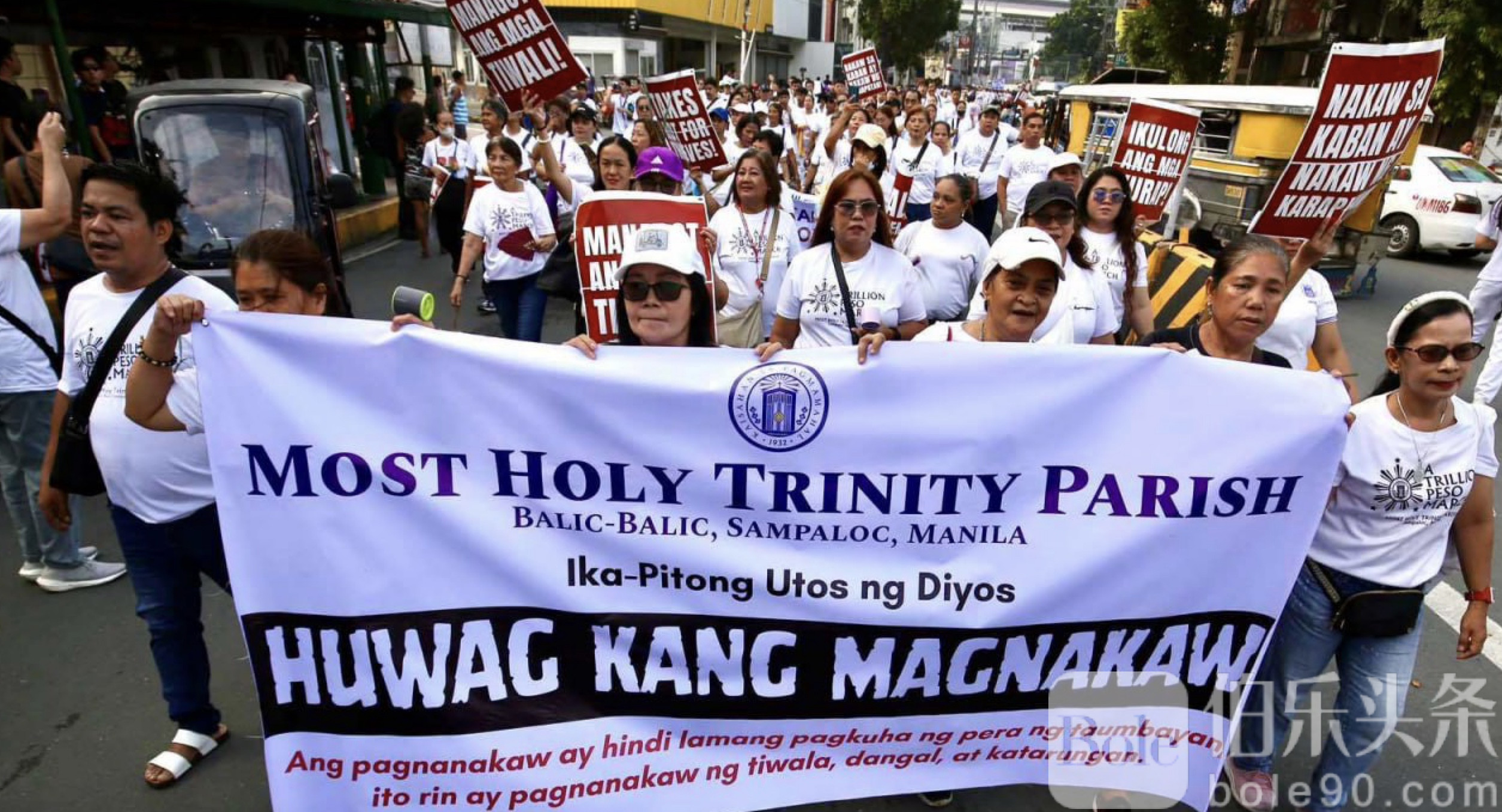 伯乐头条专讯:菲律宾马尼拉,10月11日,数百名天主教信徒在马尼拉举行和平游行,呼吁政府肃清腐败,弘扬正义与廉洁。此次活动名为“正义而行——反对贪腐游行”(Lakad Para sa Katarungan Laban sa Korapsyon),由神父、修女及平信徒共同发起。