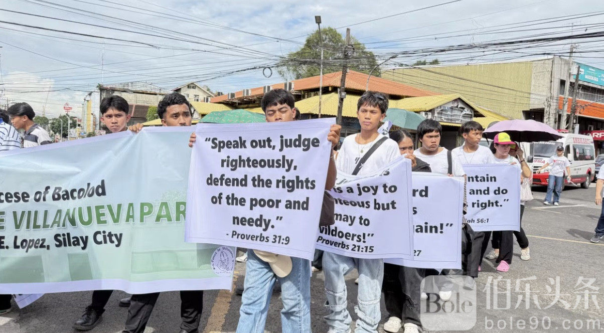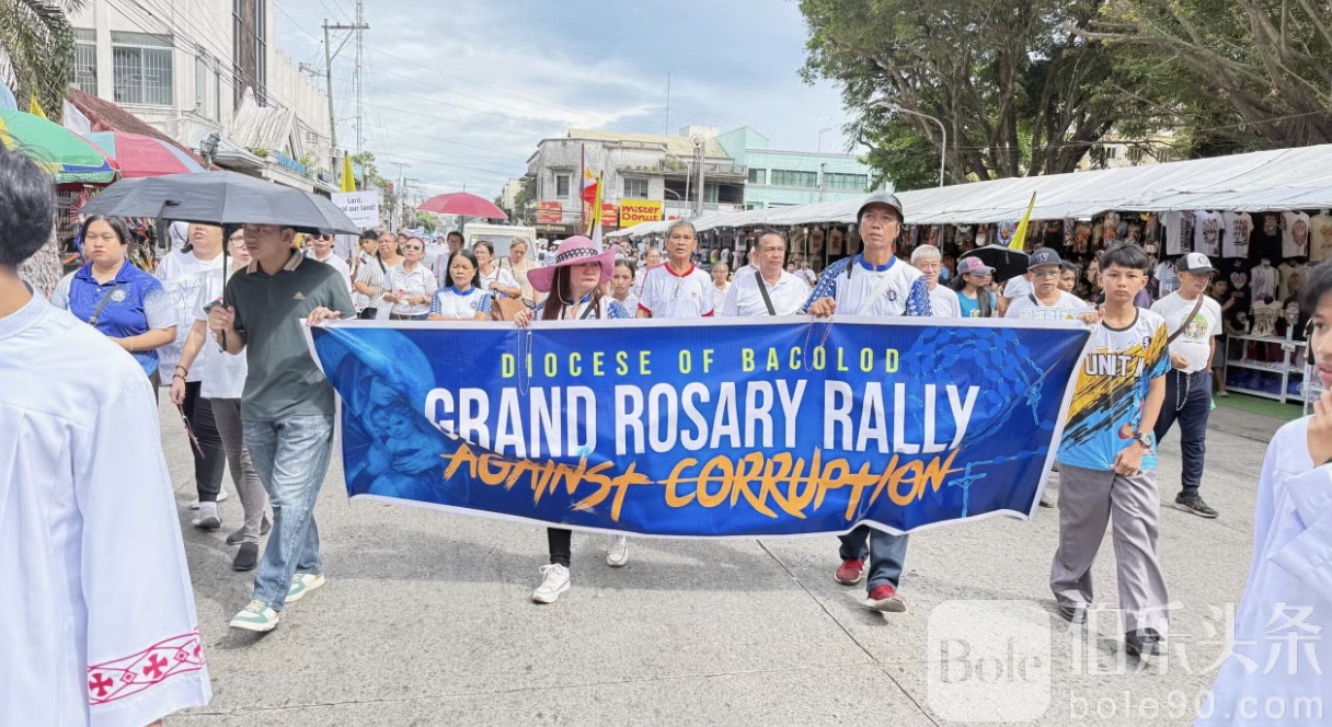 伯乐头条专讯:10月11日下午,菲律宾巴科洛德市上演了一场震撼人心的反腐祈祷集会——超过3000名天主教信徒手持玫瑰经,从全市三处出发,汇聚到圣塞巴斯蒂安主教座堂,为“被腐败侵蚀的国家灵魂”祈祷。