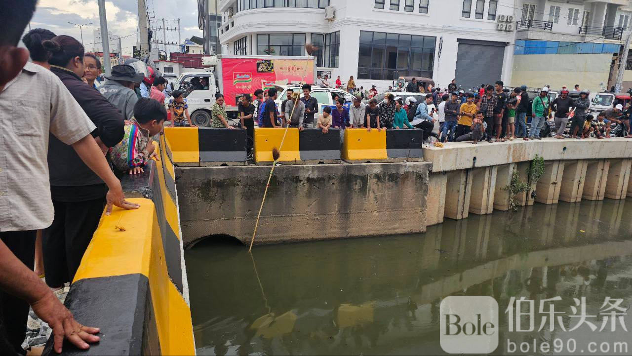 据当地警方透露,事发时间大约在凌晨4点左右,地点位于金边市区某桥附近。当时监控画面显示,一名年轻女子突然翻越护栏跳入河中。几秒后,一名男子急忙下水营救,但很快两人都被急流卷走,不见踪影。