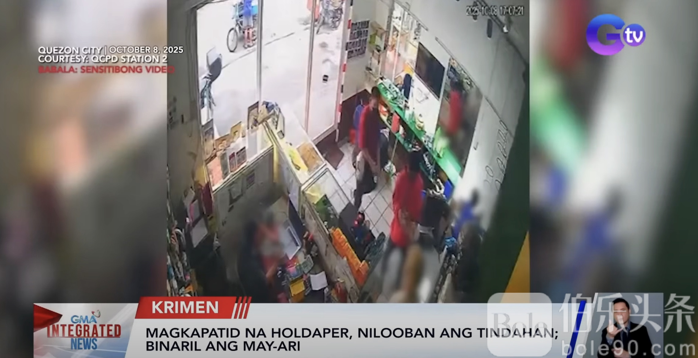 伯乐头条专讯:奎松市Katipunan商店发生惊险抢劫,一对兄妹闯入商店,抢走店主价值6万比索的珠宝,并开枪打伤店主右腿。事件发生于10月8日,嫌犯穿红T恤、戴口罩,迅速逃离现场。