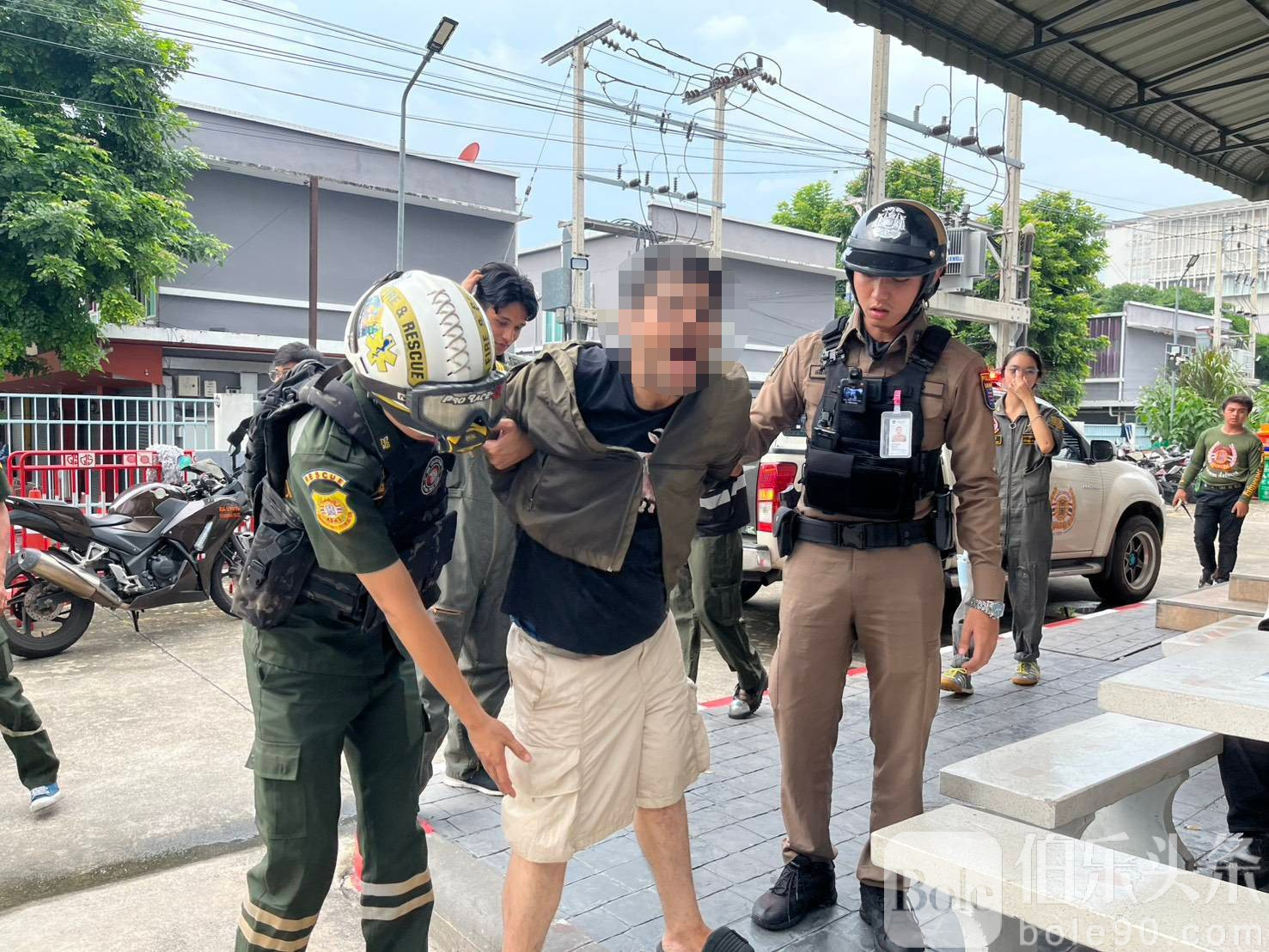 经初步检查,男子持有的并非真枪,而是一把仿真模型枪。目前,该男子已被移交至曼谷帕吐万警局接受调查,警方正进一步核实其身份与行为动机,并将依照相关法律处理。