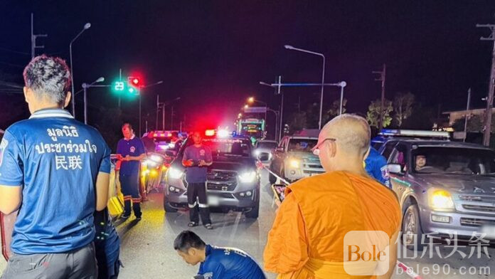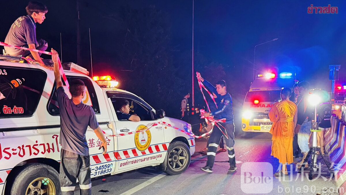 伯乐头条专讯:10月13日晚,泰国那空是贪玛叻府(Nakhon Si Thammarat)市区发生一起严重车祸,一名41岁的男子在下班回家途中骑摩托车于红绿灯路口与一辆高速行驶的皮卡相撞,当场死亡。