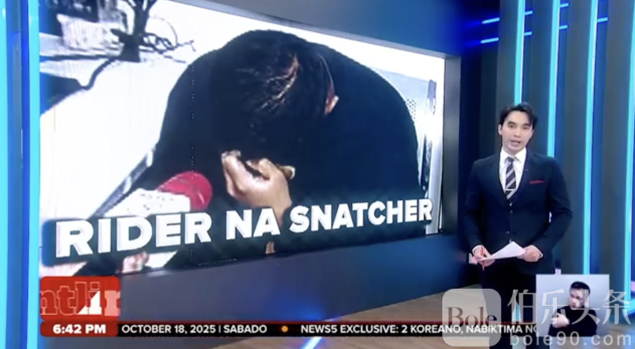 伯乐头条专讯:菲律宾马卡蒂深夜上演飞车惊魂!10月17日凌晨2点左右,一名男子冒充摩托网约车司机,在街头飞车抢夺韩国游客金项链,价值约5万比索。嫌犯企图逃逸时被巡逻保安英勇拦截,当场逮捕,整个过程被监控拍下。