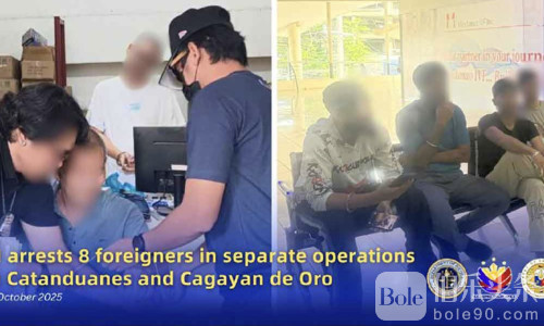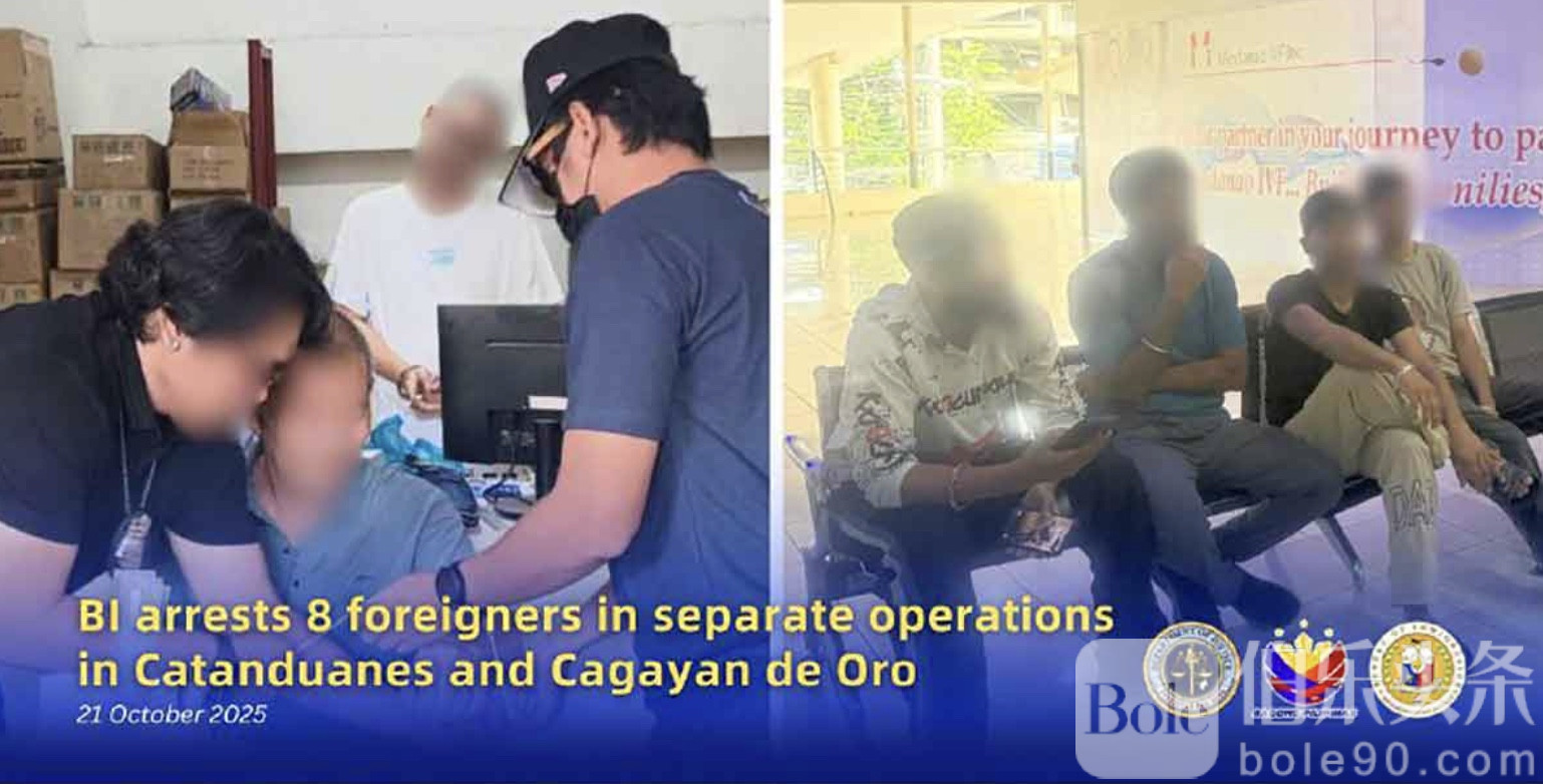 伯乐头条专讯:10月21日,菲律宾移民局(Bureau of Immigration, BI)宣布,卡坦端内斯省(Catanduanes)卡加延德奥罗市(Cagayan de Oro City)展开两场联合执法行动,逮捕了8名被指违反移民法的外国人。