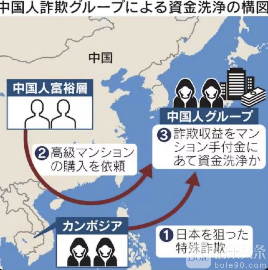 伯乐头条专讯:日本警视厅近日宣布破获一起特大跨国洗钱案,三名中国籍嫌疑人通过冒充警察实施电话诈骗,从约500名日本老年人手中骗取50亿日元,随后将赃款用于支付中国买家在东京港区、中央区等高档公寓的首付款。