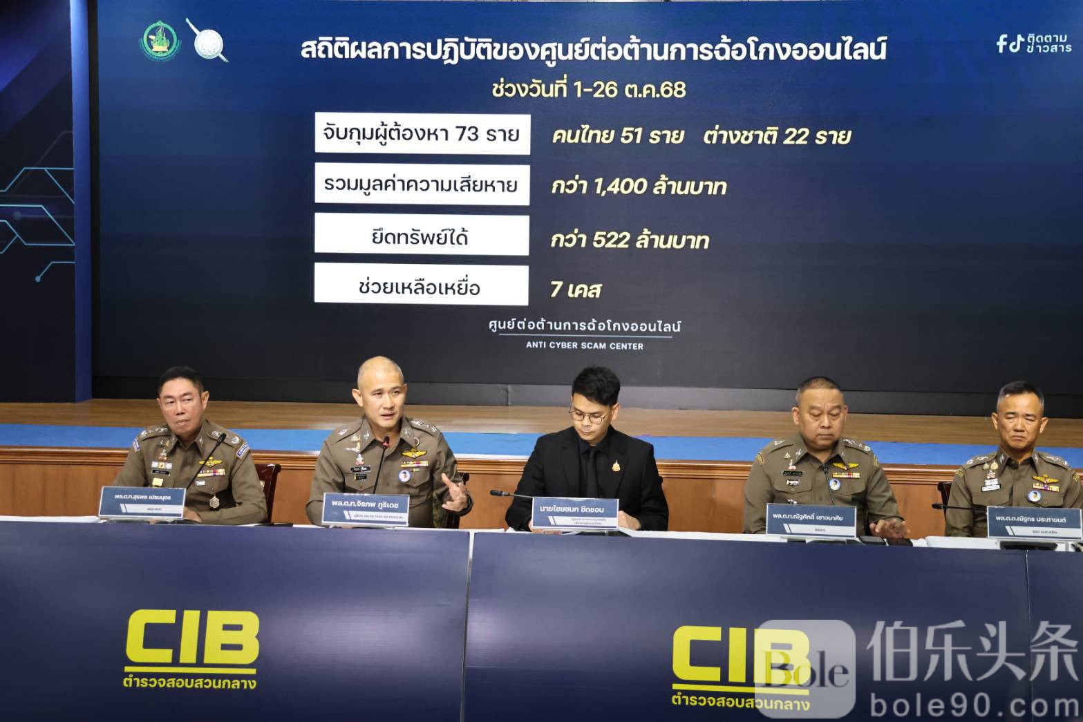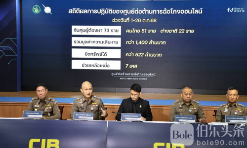 伯乐头条专讯:泰国数字经济与社会部联合警方展开大规模网络诈骗整治行动。根据最新通报,10月1日至26日,警方成功抓获73名网络诈骗及电诈嫌疑人,其中51人为泰籍,22人为外国籍,查扣违法所得522万元,涉及诈骗总额达1,400万元。此次行动还曝光一起重大案件,一名泰国副警司被发现涉及“马账户”操作,金额高达1亿元,已依法立案调查。