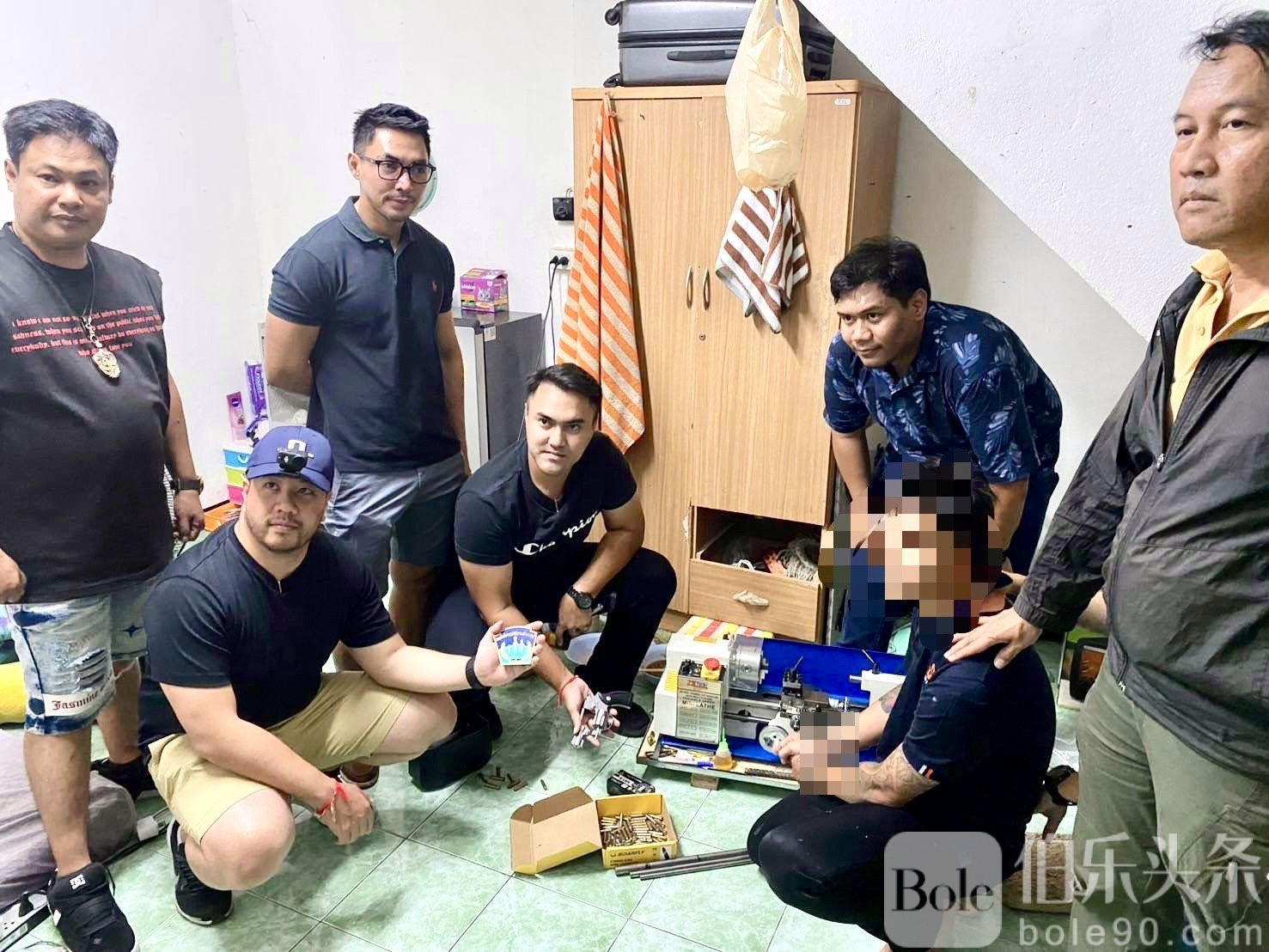 伯乐头条专讯:泰国警方近日在芭堤雅市区展开突袭行动,成功捣毁一处非法制枪窝点,逮捕一名26岁男子,当场缴获多支自制枪械、上百发子弹及用于制造枪支的车床设备。