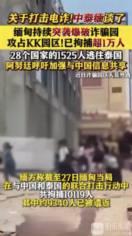 伯乐头条专讯:缅甸“反诈清剿战”全面打响!中、泰、缅三国联合出击,对妙瓦底四大诈骗园区——KK、UK、999、969 实施大规模打击行动,行动被称为“史上最大规模的跨境反诈联合战”。目前,缅方已逮捕超过1万人涉诈人员,另有来自28个国家的1525人趁乱逃入泰国,其中不乏中国籍核心操盘手与园区骨干。