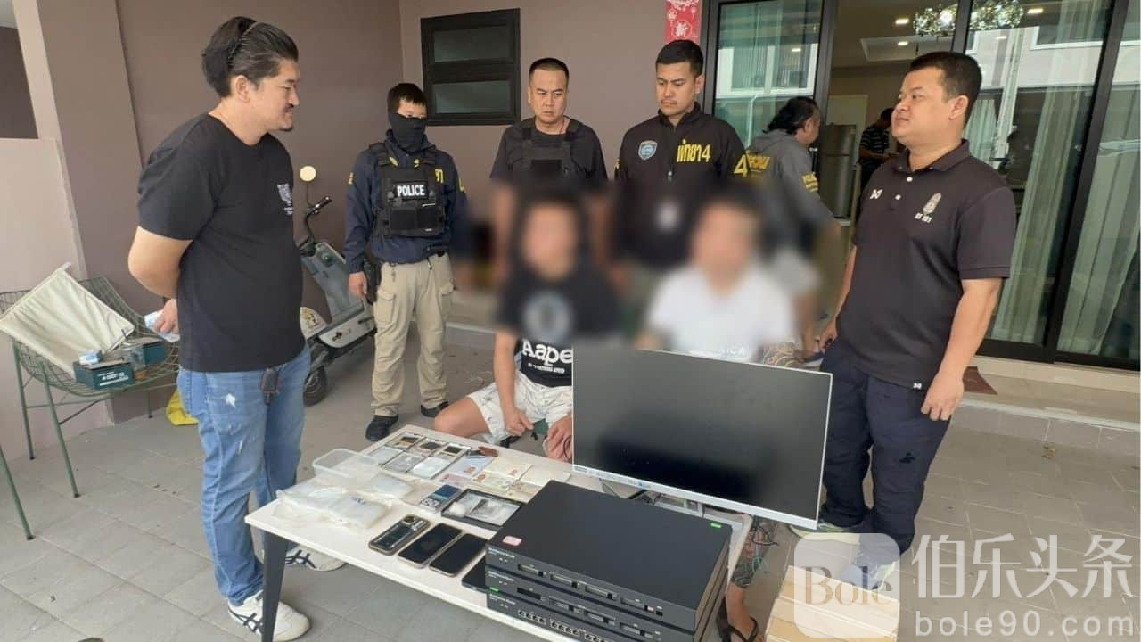伯乐头条专讯:泰国芭堤雅警方突袭豪宅,抓获两名台湾男子,现场缴获氯胺酮、笑气及相关派对用具。
