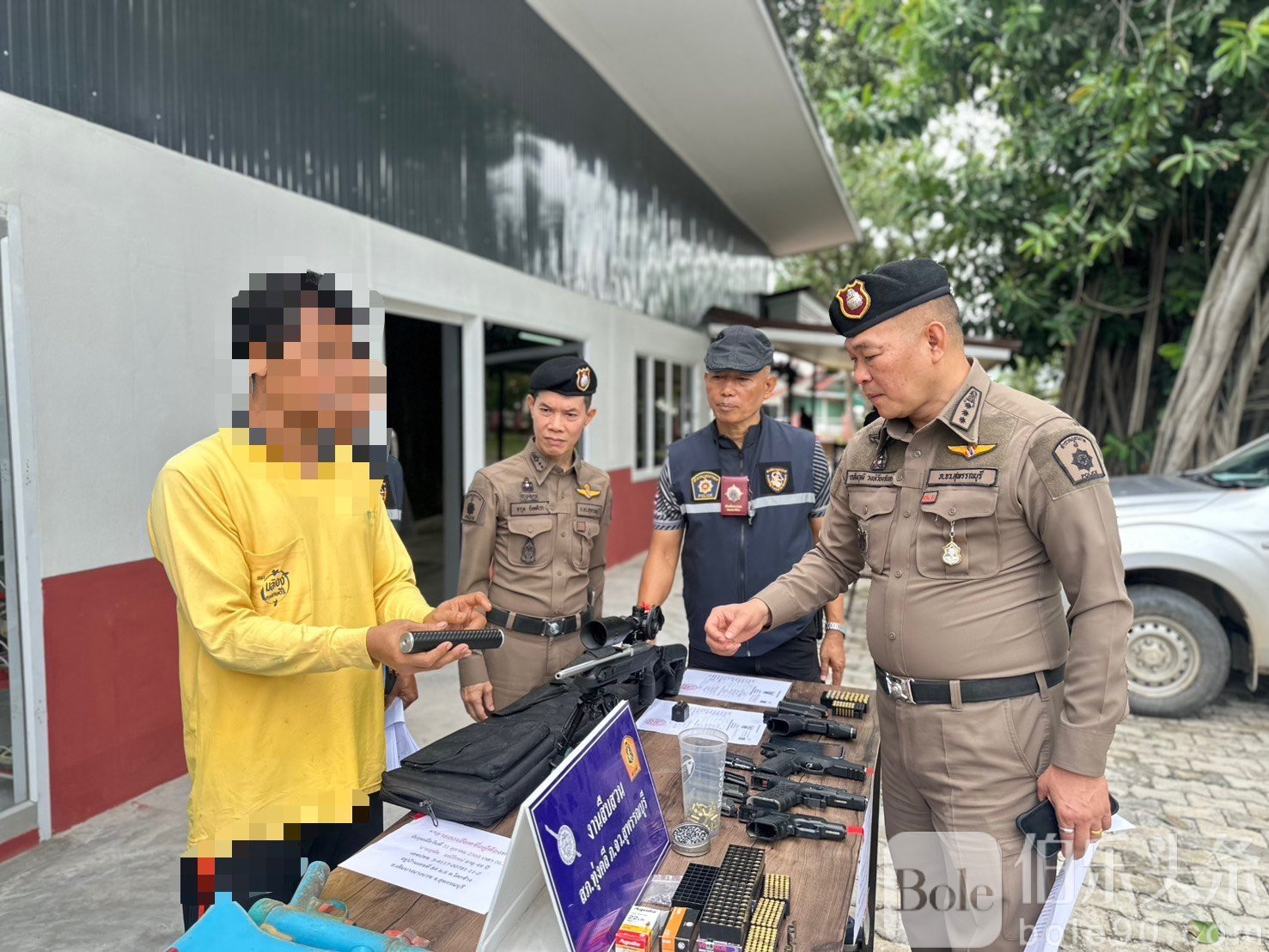 伯乐头条专讯:泰国苏攀府警方近日在农区展开突袭行动,查获一名当地副村长持有大量非法武器及改装装备。警方在现场发现包括长短枪共6支、消音器、各类弹药、12道膛枪管、改装机械及无人机等物品,怀疑与线上非法武器交易有关。