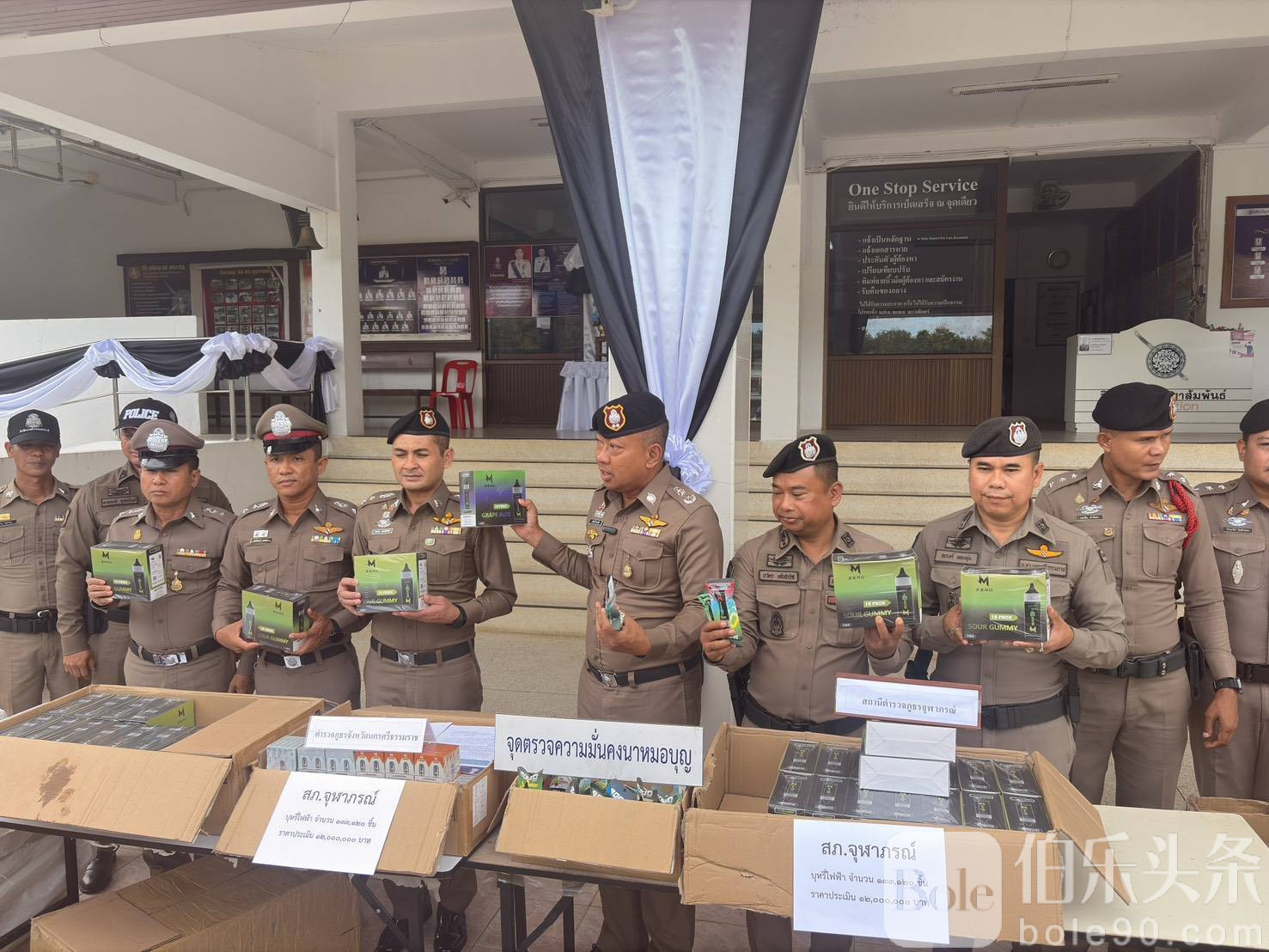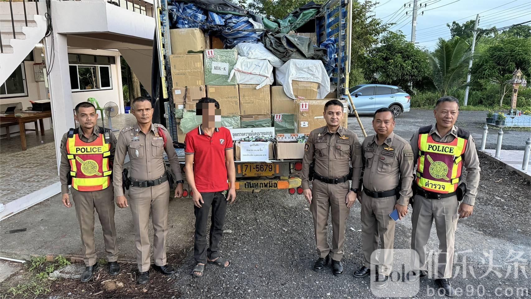 伯乐头条专讯:泰国南部警力近日在九拉邦展开布控,成功拦截一辆试图绕过安检的非法电子烟运输车。警方在道路分流点设立临时检查点,锁定可疑运输车,并在车辆中查获133,120支电子烟。司机为40岁南部当地男子普里查(Pricha),他供称受雇将货物运往曼谷。