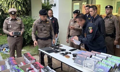 伯乐头条专讯:泰国暖武里警方重拳出击,成功捣毁一个大型电子烟仓库,现场查获超过 8 万件电子烟产品及多件枪械,总价值高达 2400 万泰铢!警方行动由暖武里府警察局局长德察披·空迪少将(Pol. Maj. Gen. Dechrapee Khongdee)亲自带队执行,震动全城。