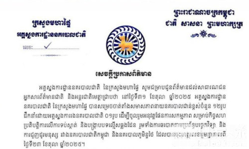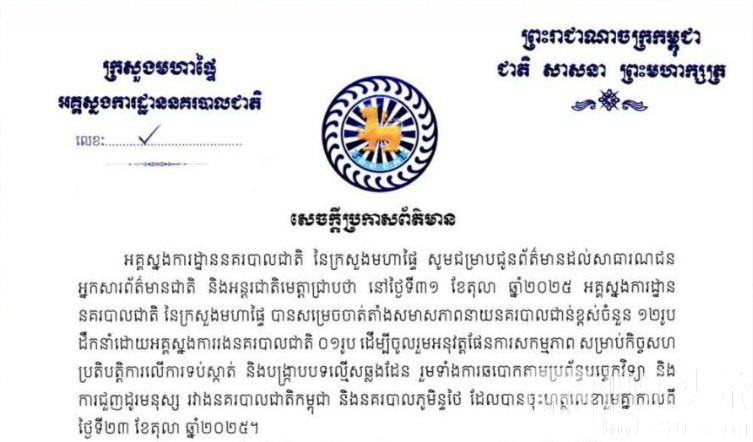 根据公告,2025年10月31日,内政部任命由1名副国家警察总监领导的12名高级警官组成专项小组,负责落实与泰国皇家警察于10月23日签署的《跨境犯罪合作行动计划》,重点涵盖网络诈骗和人口贩运。