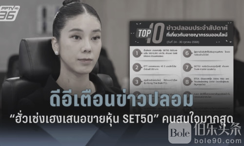 伯乐头条专讯:泰国数字经济与社会部下属反假新闻中心(AFNC)于11月2日对外公布最新监测结果,点名民众最常遇到的“十大网络犯罪假新闻”,并提醒公众提高警觉,尤其当心以“高回报”“官方福利”“线上办证”为诱饵的虚假信息。10月24日至30日一周内,AFNC共接获近101万条信息需筛查,最终列出公众最关心的10大假新闻样态,涵盖假股票分红、假政府补贴、假在线办证、伪装成官方机构的虚假投资课程等。