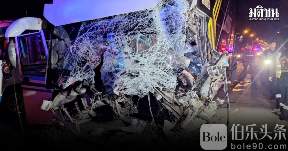 伯乐头条专讯:11月3日凌晨4:30左右,泰国孔敬府蓬县发生严重交通事故,一辆旅游大巴在曼谷—孔敬路线上与一辆水泥罐车相撞,造成2人当场死亡(1男1女),约30名乘客受伤。事故发生后,警方立即通知消防和急救部门,现场救援人员迅速展开行动,将伤员紧急送往孔敬府及周边医院救治,其中数名伤者伤势较重,正在接受手术和密切观察。