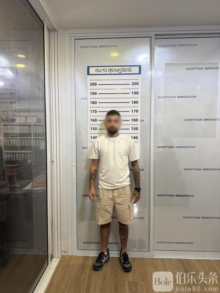 伯乐头条专讯:11月2日,泰国移民局在素叻他尼府苏梅岛机场成功抓获一名以色列籍跨国通缉犯。该嫌疑人因涉嫌多起跨国贩毒、武装抢劫及入室盗窃案件,被以色列当局长期通缉。