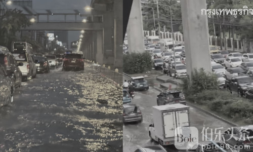 伯乐头条专讯:11月4日清晨,曼谷突遭强降雨袭击,短短数小时内多区被暴雨淹没,道路积水严重,早高峰交通几乎陷入全面瘫痪。气象局警告称,今日曼谷降雨覆盖率高达60%,暴雨仍将持续,市民出行恐进一步受阻。