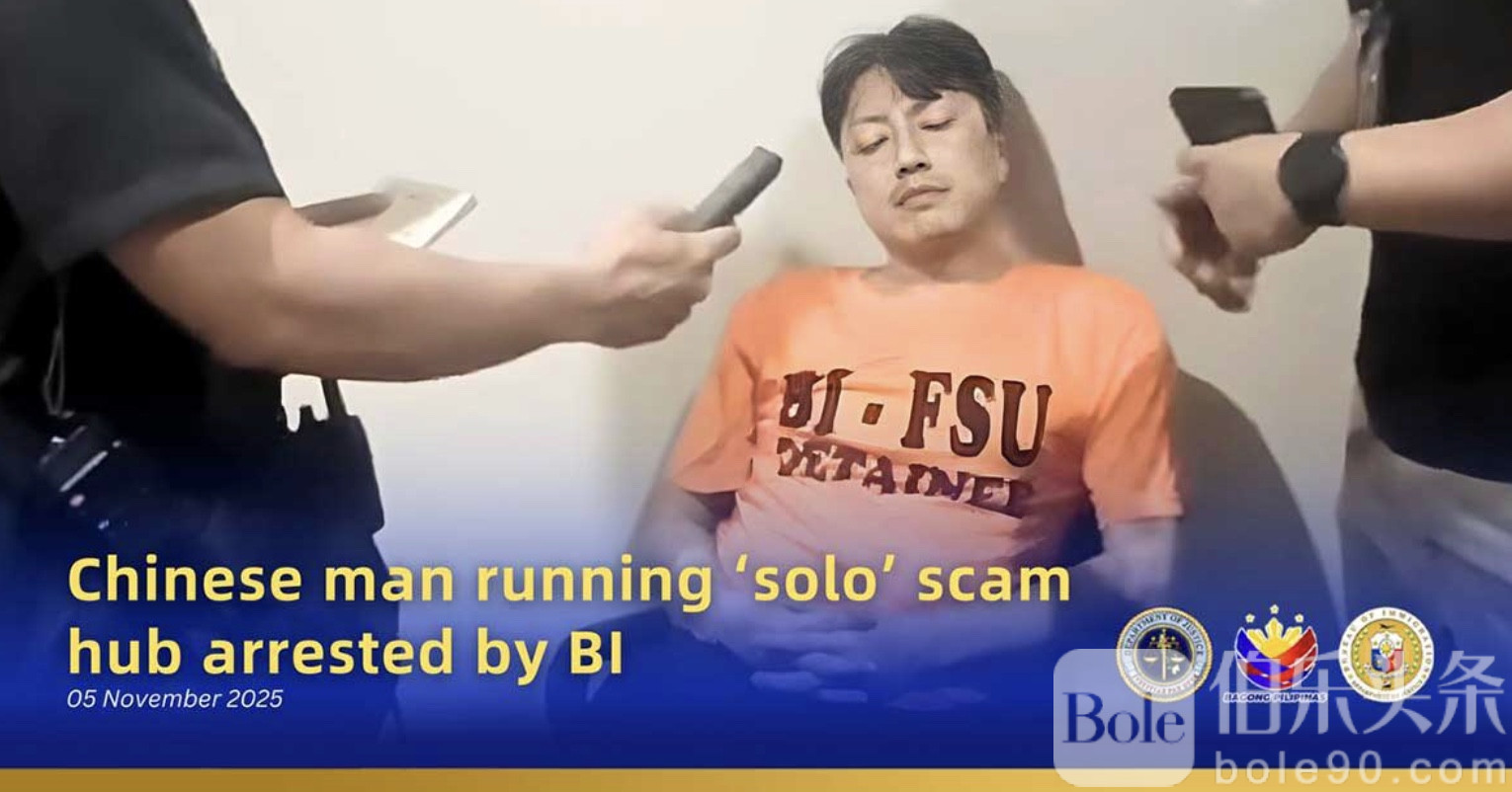 伯乐头条专讯:菲律宾移民局(BI)官员周一在帕拉尼亚克市一处公寓内抓获一名中国籍男子刘峰(41岁),其涉嫌独自经营以居家为基地的加密货币投资诈骗。