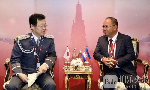 伯乐头条专讯:在泰国曼谷举行的第43届东盟警察首长会议期间,柬埔寨国家警察总署副总监森万那维拉(Sok Vannavira)于11月5日上午分别会见了日本警察厅副厅长高一·立川(Koichi Tachikawa)以及韩国警察厅国际合作局局长兼国际刑警韩国国家中心局局长李载英(Lee Jae Young)。