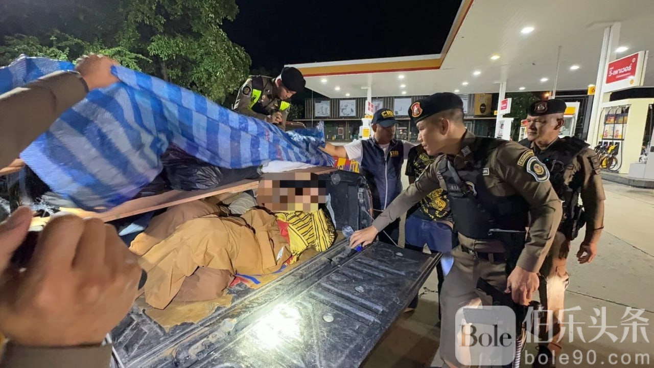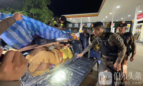 伯乐头条专讯:11月5日,泰国公路警方在大城府玛哈叻县亚洲路巡查时,拦下一辆超速违规变道的黑色三菱皮卡车。车厢用篷布遮盖,疑似载有重物。警方上前盘查后发现,司机竟是曾两度因走私非法移民被捕的惯犯。