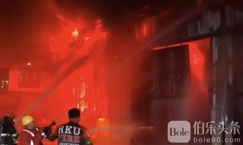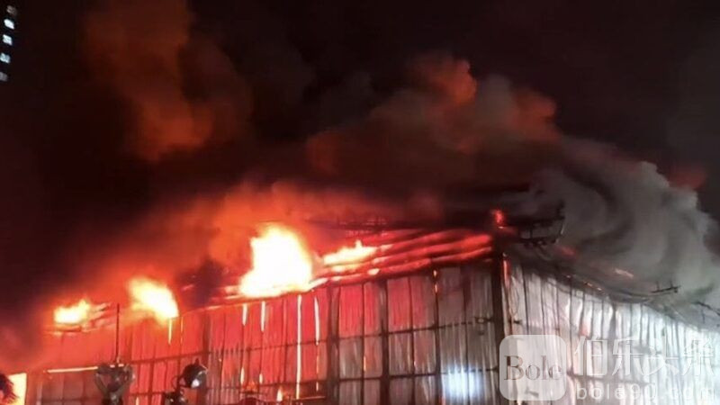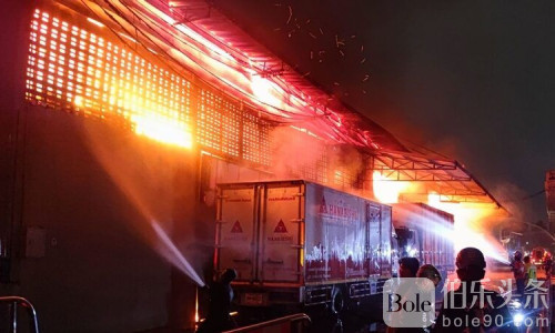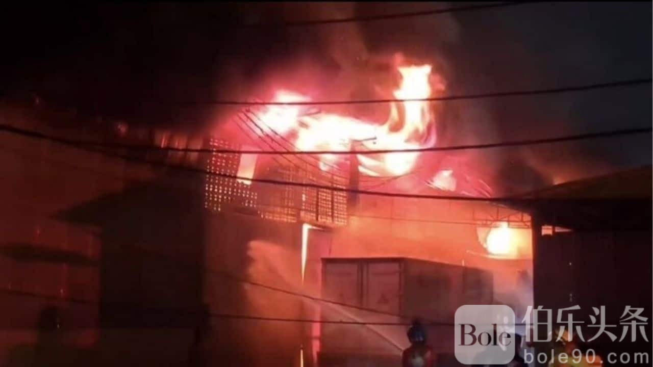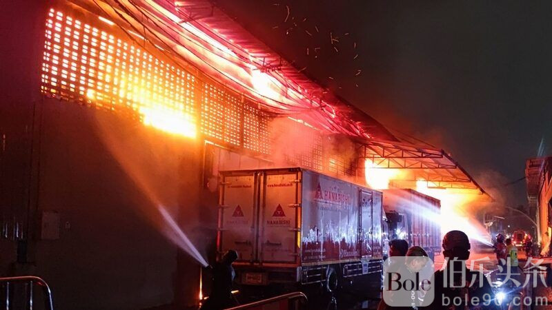 伯乐头条专讯:11月6日凌晨,泰国曼谷拉差布拉那区一处仓库突发大火,现场火光冲天并伴有多次爆炸声,黑烟滚滚,方圆数公里可见,消防员紧急出动扑救。