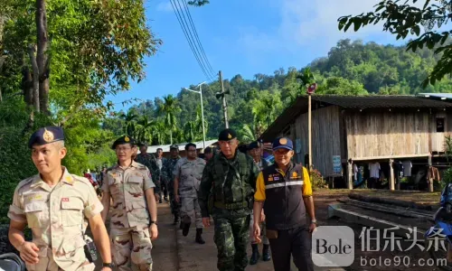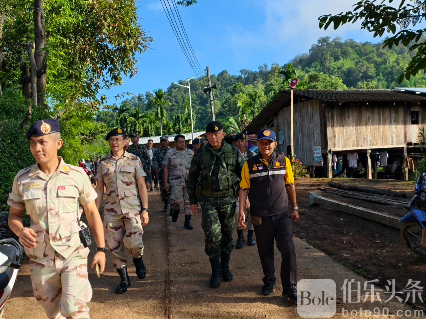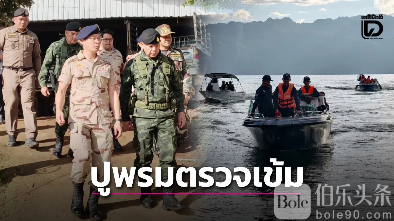 伯乐头条专讯:泰国甘烹碧府黄金山(ทองผาภูมิ, Thong Pha Phum)地区近日加强水陆联合巡逻,严防非法行为,特别是跨境偷渡和毒品走私活动。根据泰国陆军总司令潘纳·克劳帕多图的指示,苏拉西(สุรสีห์, Surasi)作战部队联合当地政府及安全部门,展开主动式防控行动。