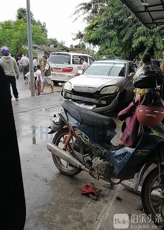 伯乐头条专讯:缅甸密支那市(Myitkyina)昔度巴街区近日发生一起交通事故,一名女交警驾车逆行,撞上一名正在路边购物的男子及其摩托车,造成男子受伤。
